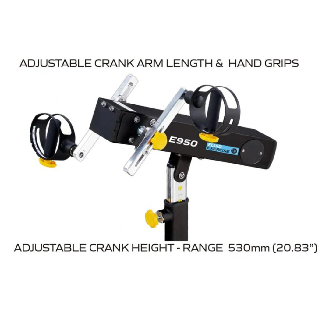 Introducing the FluidExercise E950 Medical Upper BodyErgometer, a versatile and high-quality commercial-grade machine suitable for athletes, fitness enthusiasts, and patients on rehabilitation programs. This ergometer is engineered to provide maximum operational flexibility, with bidirectional seated or standing upper-body cycling and a removable seat that allows for wheelchair access.