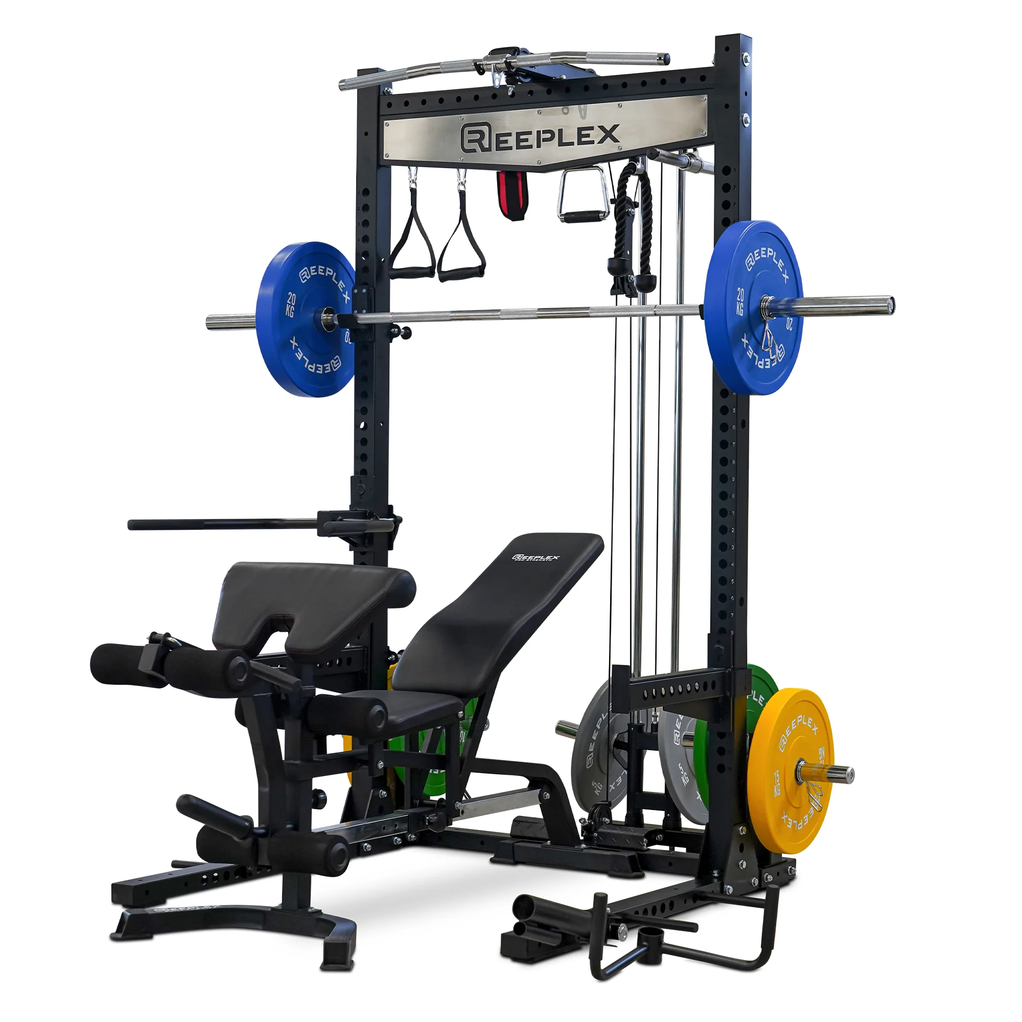 Reeplex RPR8 is a powerful squat rack designed with a clever 2 in 1 Lat pulldown and seated row attachment. This squat rack will allow you to perform bench press, back squat and a variety of barbell exercises as well as all your cable workouts from one compact frame design.