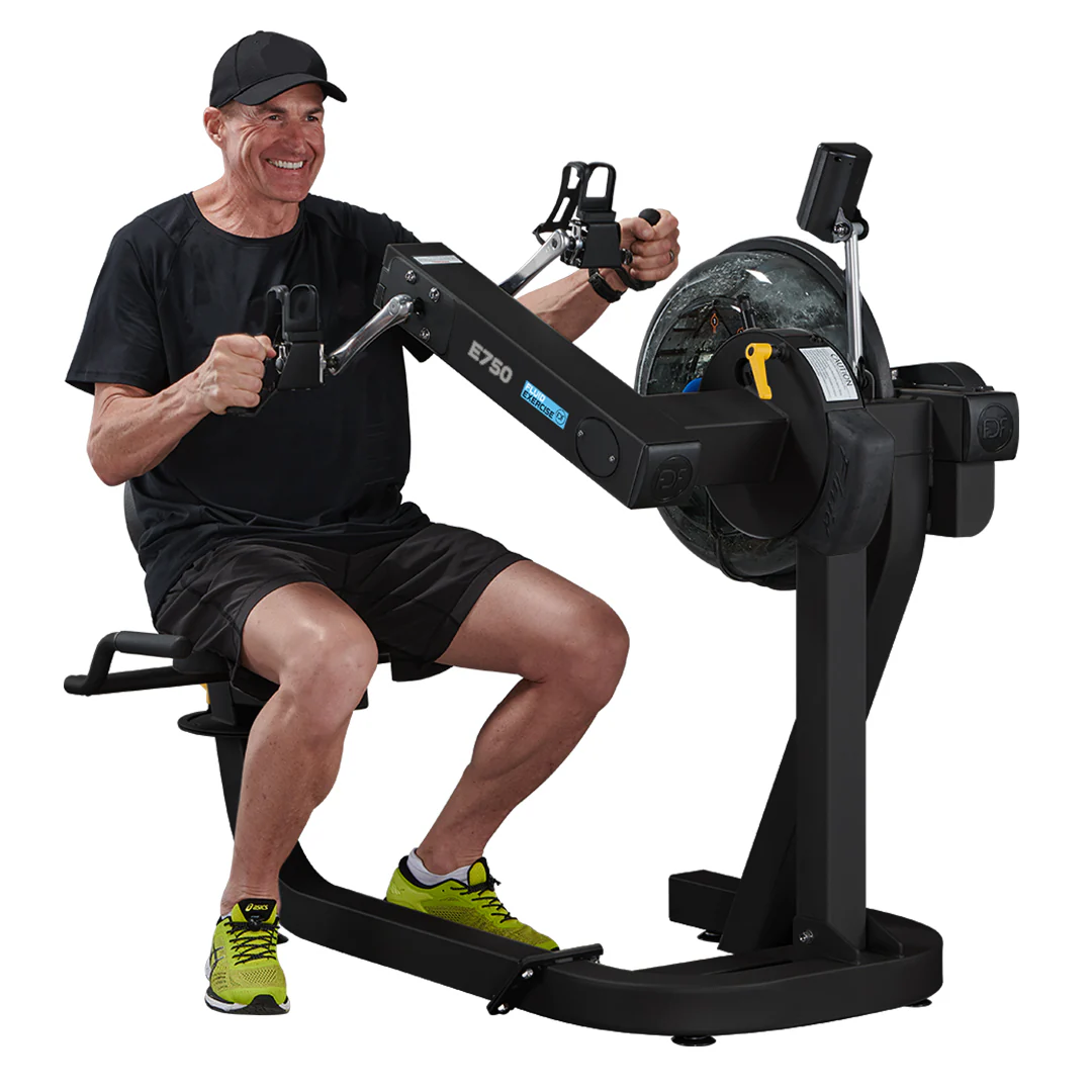 Powered by FDF’s patented fluid innovation technology, its 10 levels of water resistance offer refined and more finite increments for patient safety and skill development. The E750 is an inclusive training device, allowing both disabled and non-disabled users to benefit from a cardiovascular and resistance-based workout.